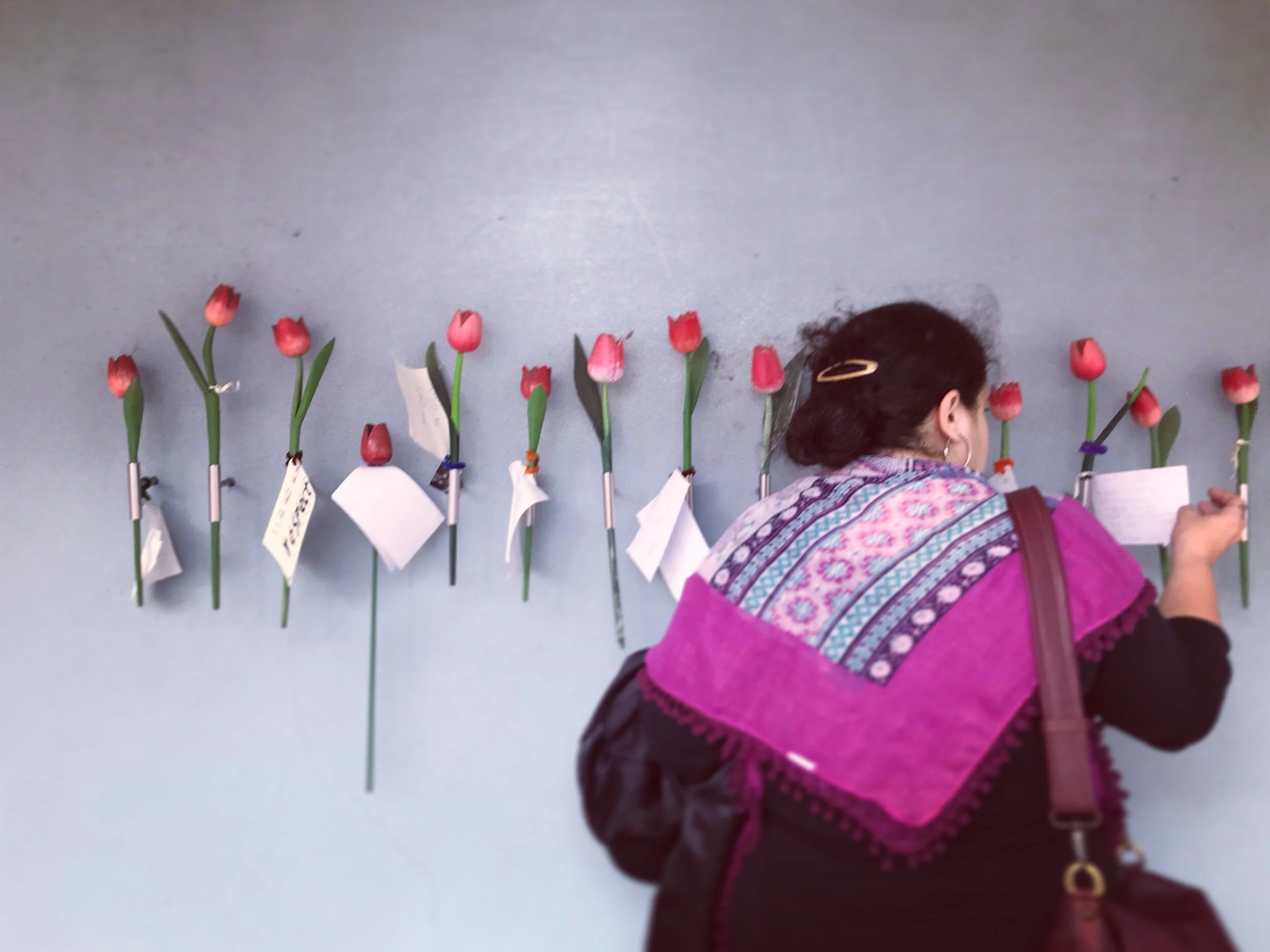 Karin Karakasli at the Hollandse Schouwburg memorial in Amsterdam. Photo by Canan Marasligil.